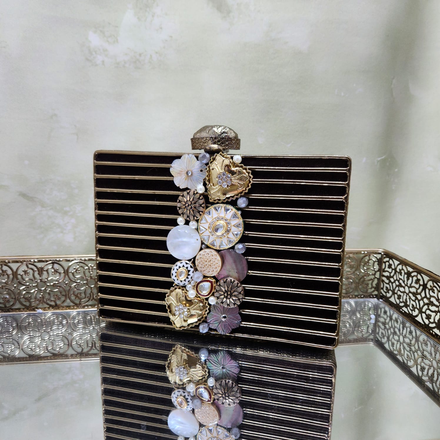 Adwita's Designer Brass Bags are a stunning blend of contemporary design and timeless elegance. Crafted with precision, each bag features intricate brass detailing, showcasing exceptional craftsmanship. The combination of rich textures and durable materials creates a striking accessory that adds a touch of luxury to any outfit. Perfect for those who appreciate unique, handcrafted elegance, these bags offer both style and sophistication.