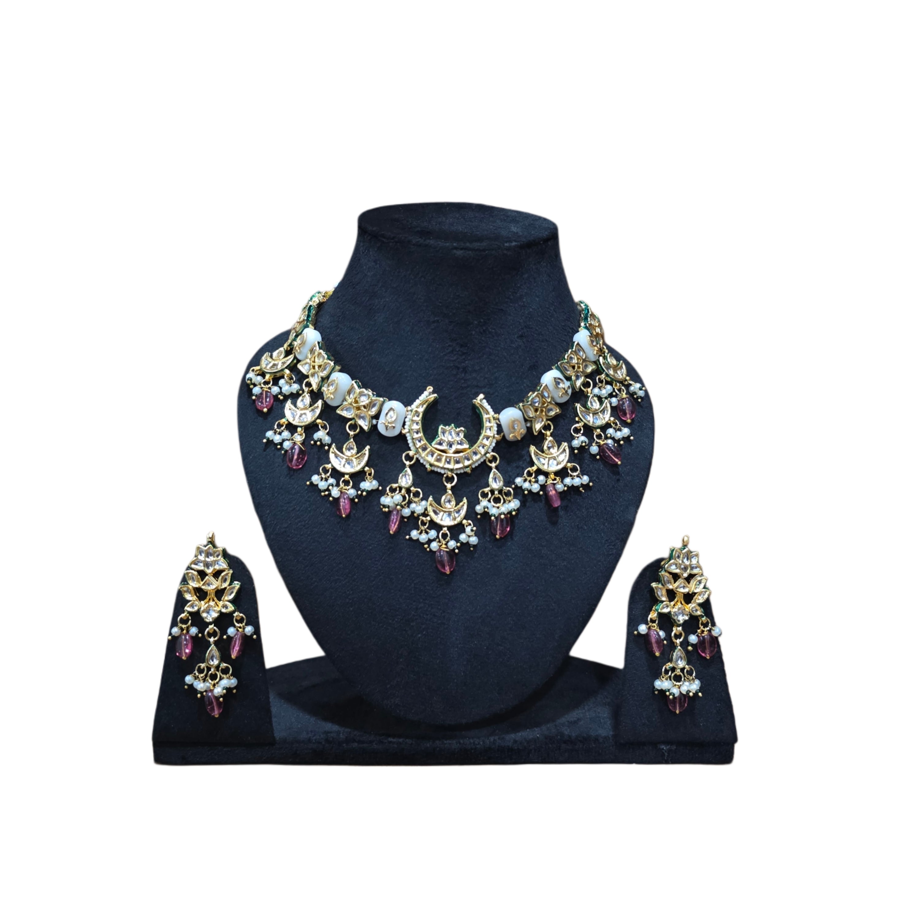 Handcrafted necklace set in kundan and stone