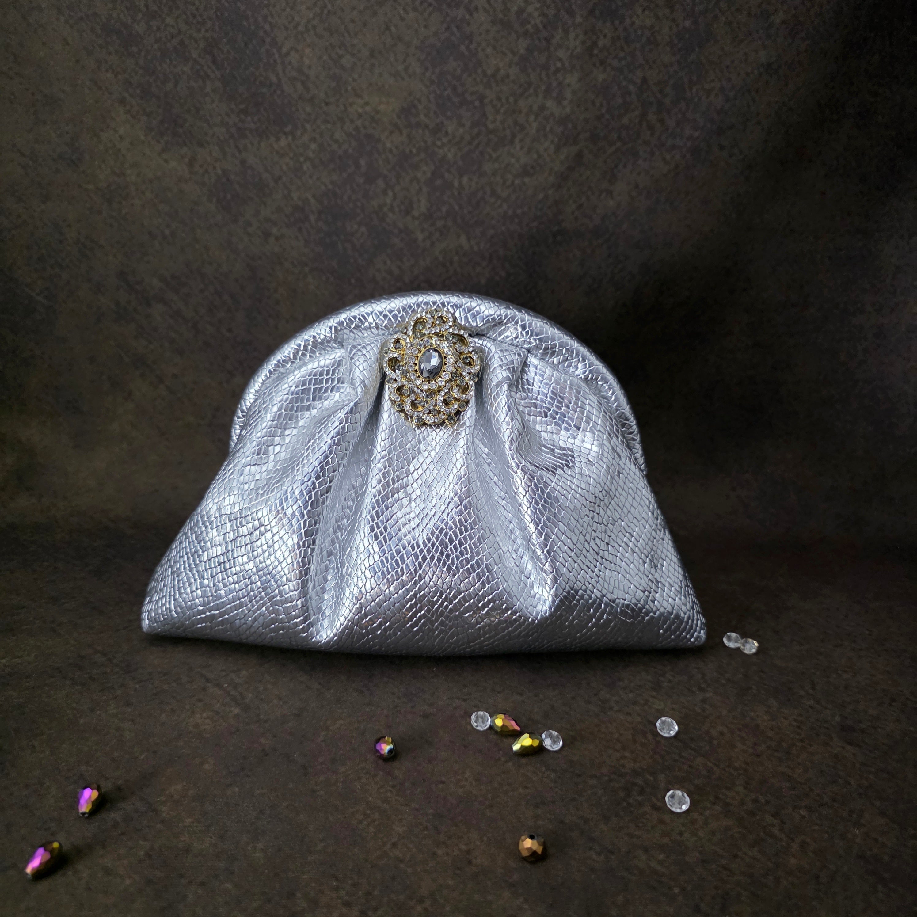 Our crystal broach pouchettes are crafted in high-quality vegan leather, designed with luxe textures, delicate pleats, and a detachable crossbody sling for effortless styling. 🌹 Perfect for weddings, soirées, or simply elevating your everyday glam. 💎✨